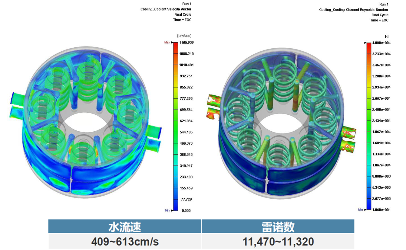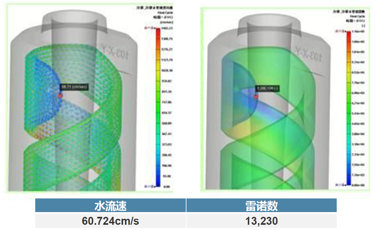 # 1.多重隨形水路,CAE分析達(dá)到最佳流速和雷諾數(shù);